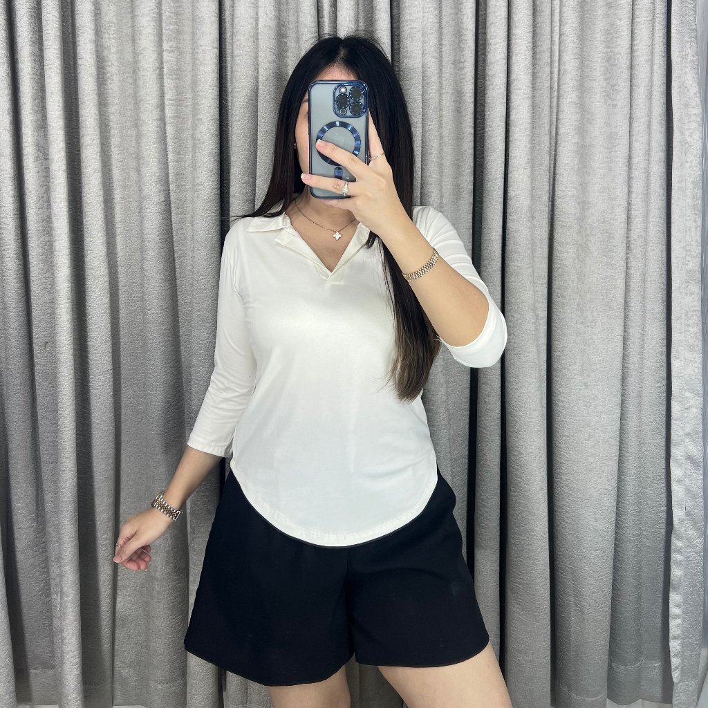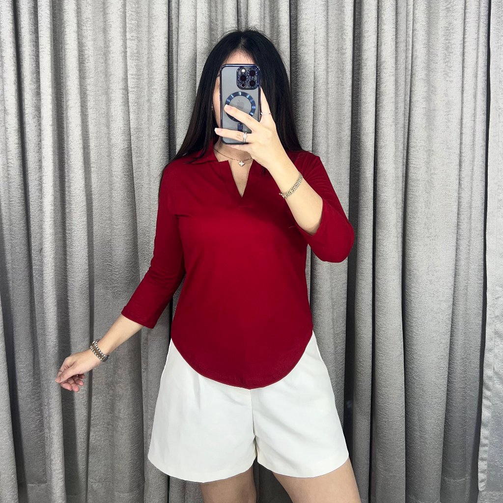 Olive Atasan Kerah V Lengan Panjang