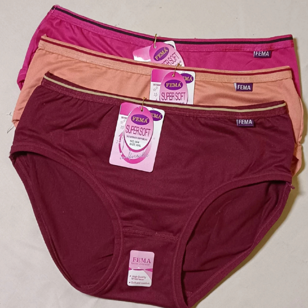 12 pcs celana dalam wanita super lembut FEMA size L XL XXL- CD remaja polos
