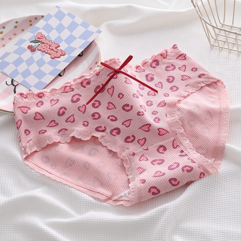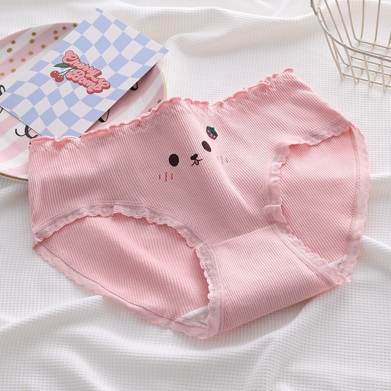 PEACHIE CD1592 Celana Dalam Motif Strawberry Pink CD Wanita Sutra Elastis Mid Waist Bahan Spandex