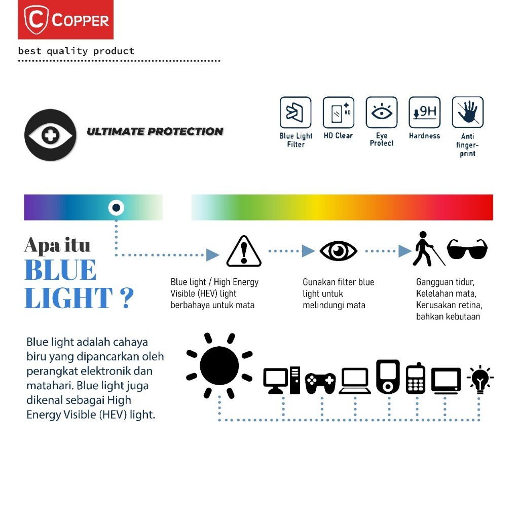 COPPER New Generation Tempered Glass Anti Blueray – HD Clear | Kompatibel untuk iPad Pro 2/3/4/M1/M2/M4 | iPad Mini 6/7 | iPad Air 3/4/5 M1/6 M2/M3 | iPad 7/8/9/10/11