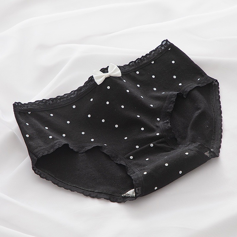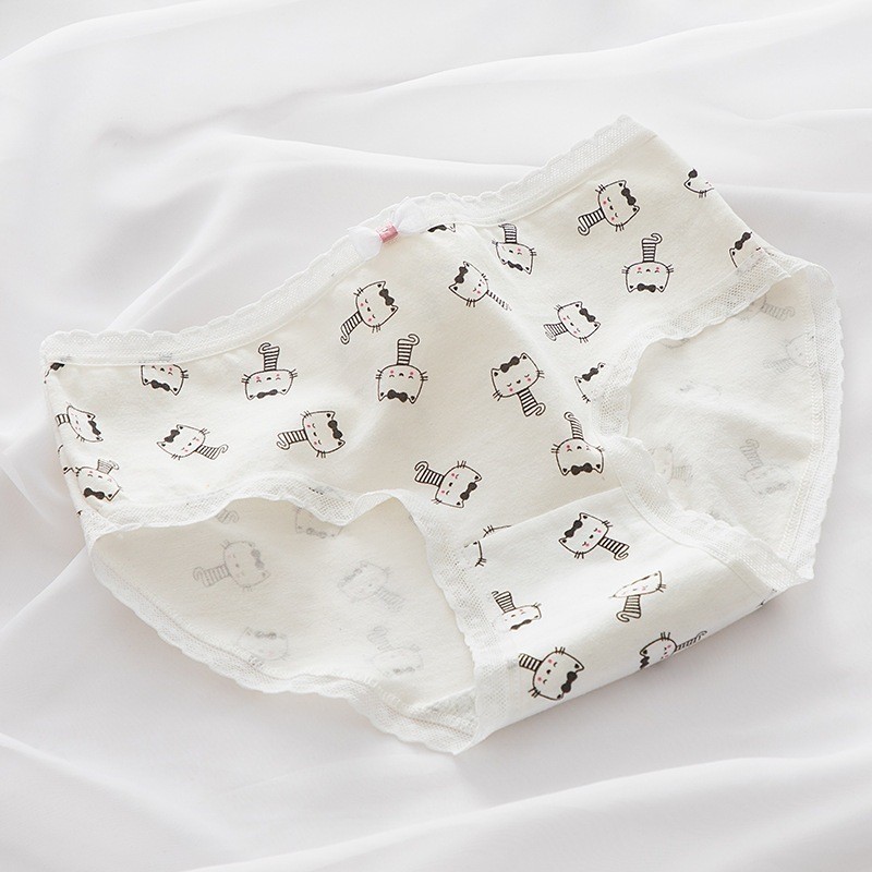 PEACHIE CD1588 Celana Dalam Sutra Briefs Elastis Mid Waist Pakaian Dalam Motif Cat Hitam Putih