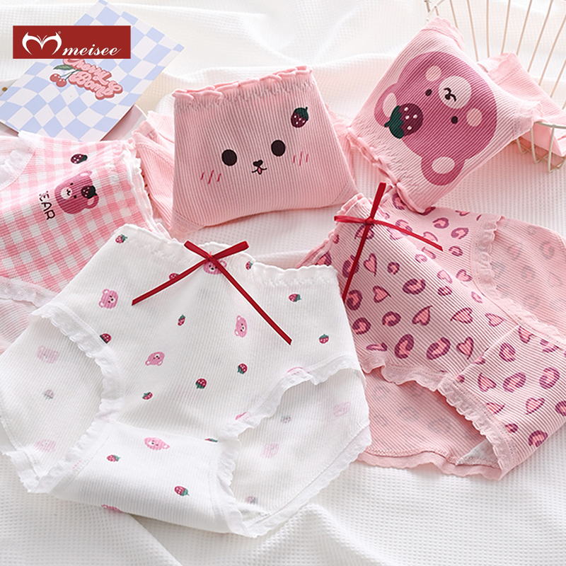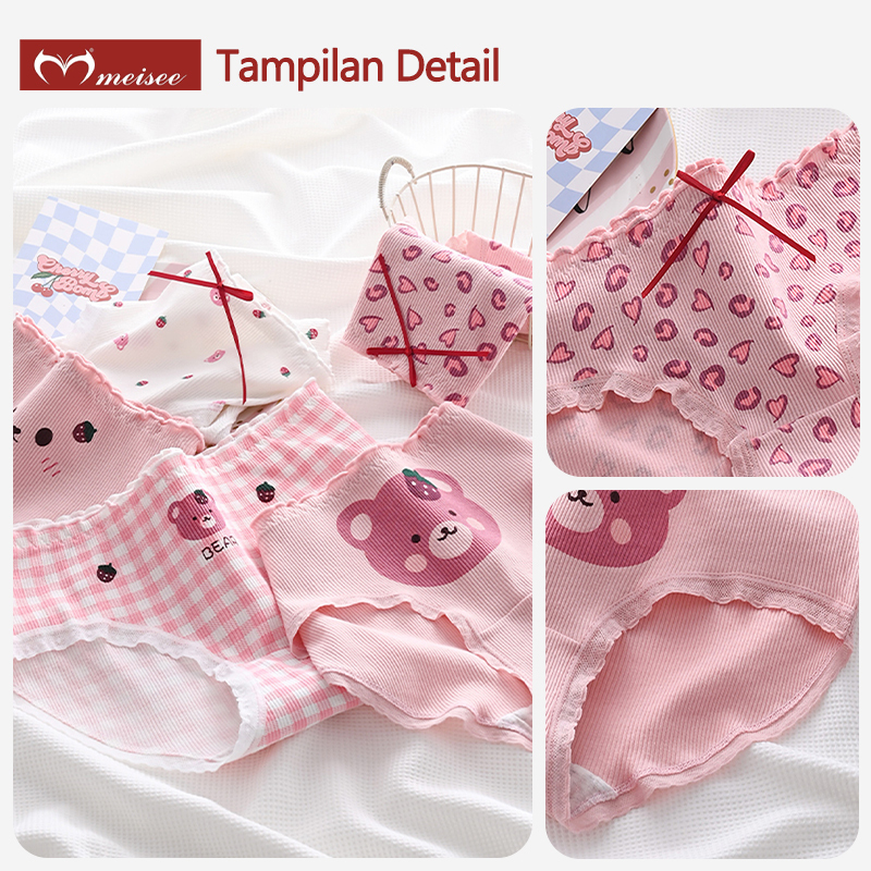 MEISEE 5 Paket Celana Dalam Wanita Katun Remaja CD Cewek Anime Lolita Kawaii Jepang Panties Wanita
