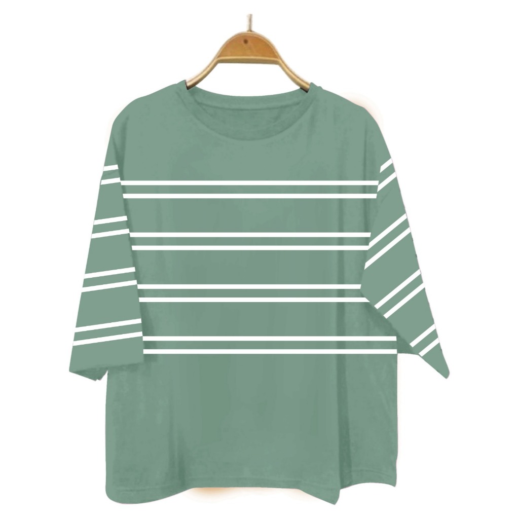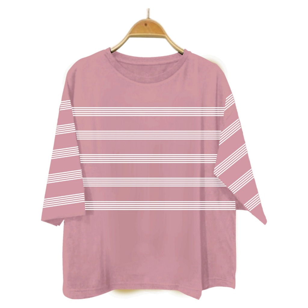 KAOS OVERSIZE WANITA TANGAN 3/4 SALUR STRIP 1, 2 , LIDI, 18 SABLON