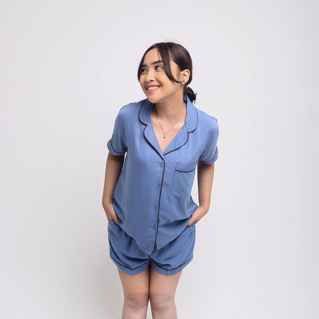 Lumina Piyama One Set Baju Celana Pendek Rayon Varian Warna Setelan Wanita Baju Tidur rayon twil