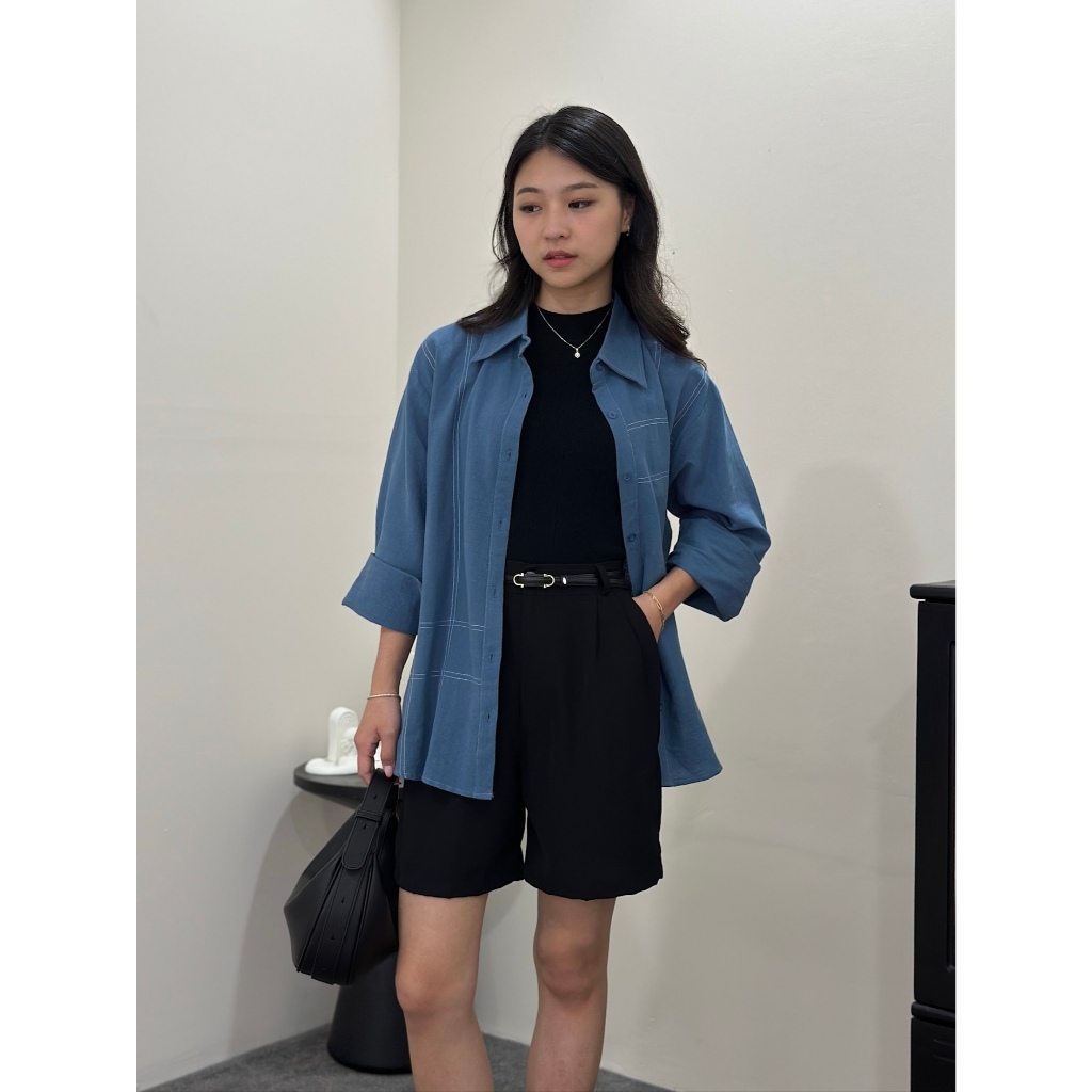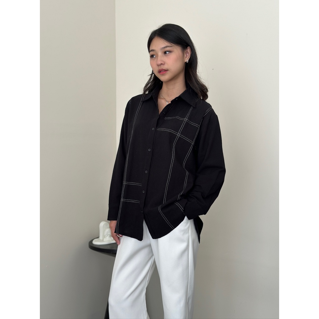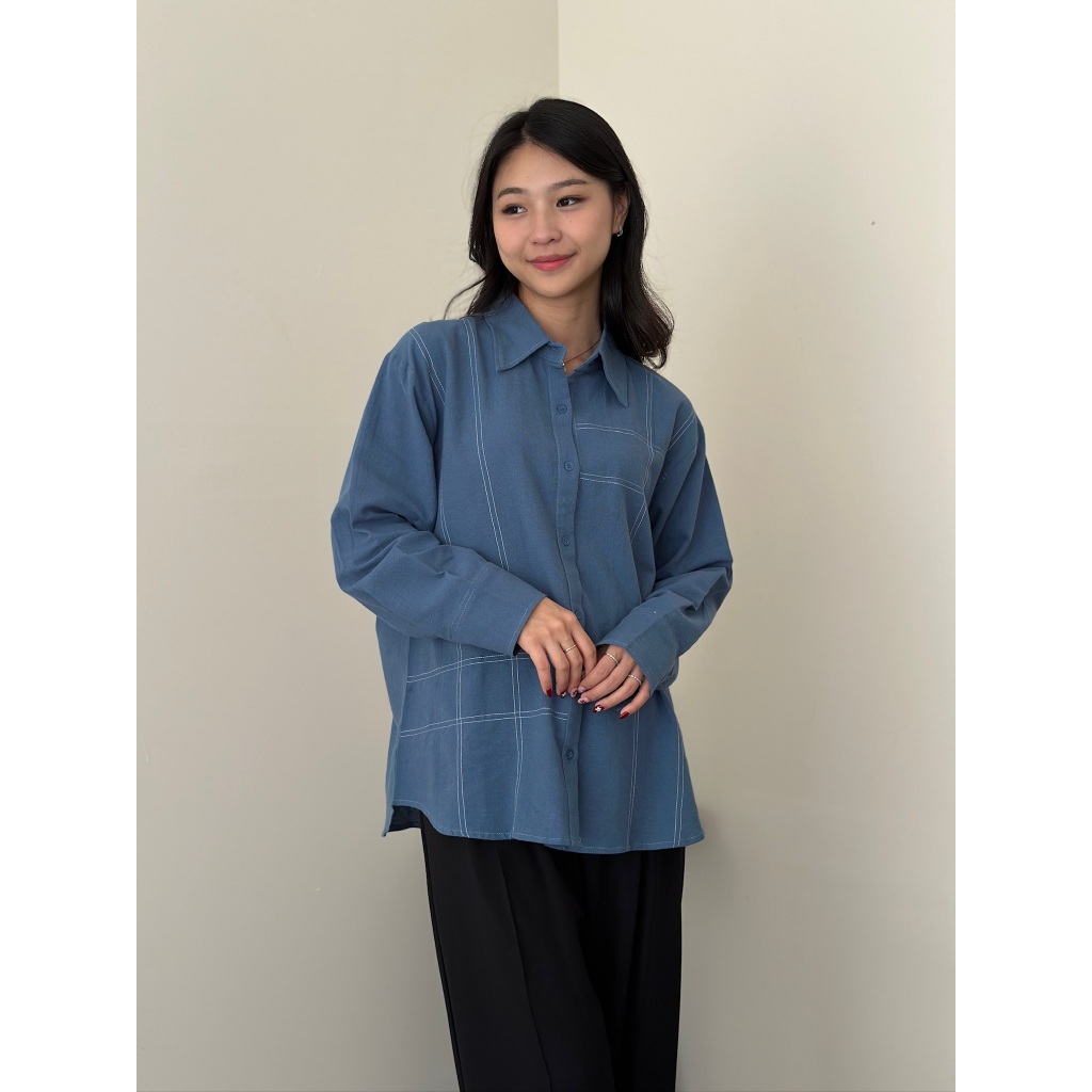 ASOKA Twila Shirt 2289 - Contrast Stitch Oversize Blouse Long Sleeve - Atasan Wanita Kemeja