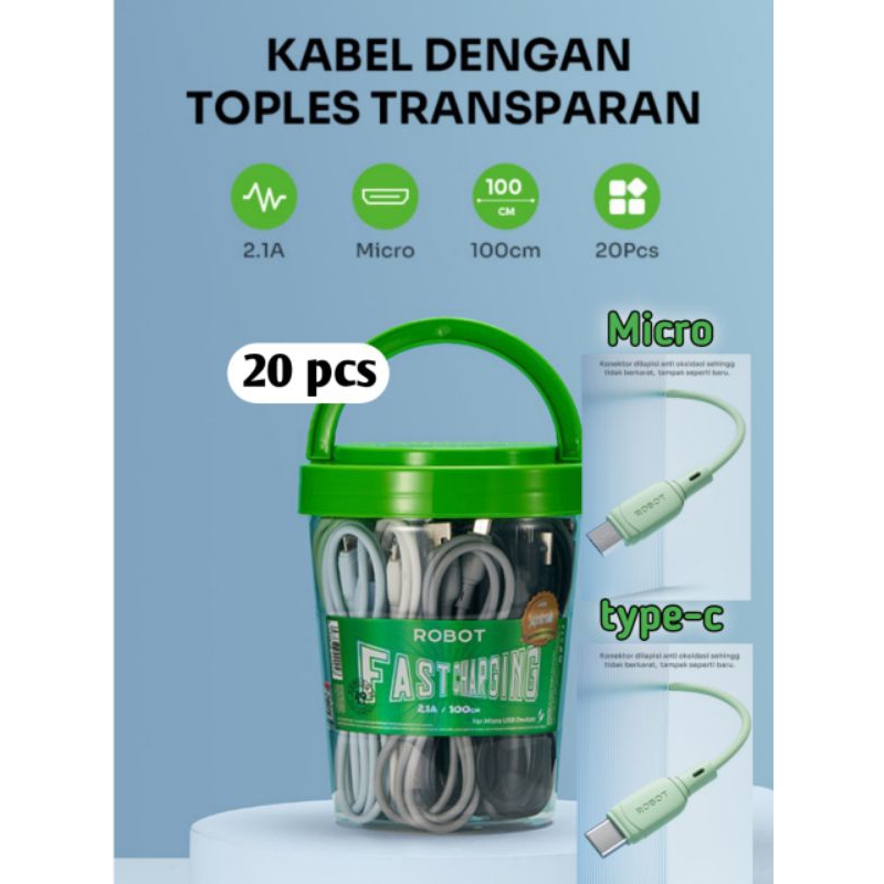 ISI 10 & ISI 20 Kabel Data ROBOT RBC100 11 Type C & RBM100 11 For Micro USB Devices 2A Fast Charging
