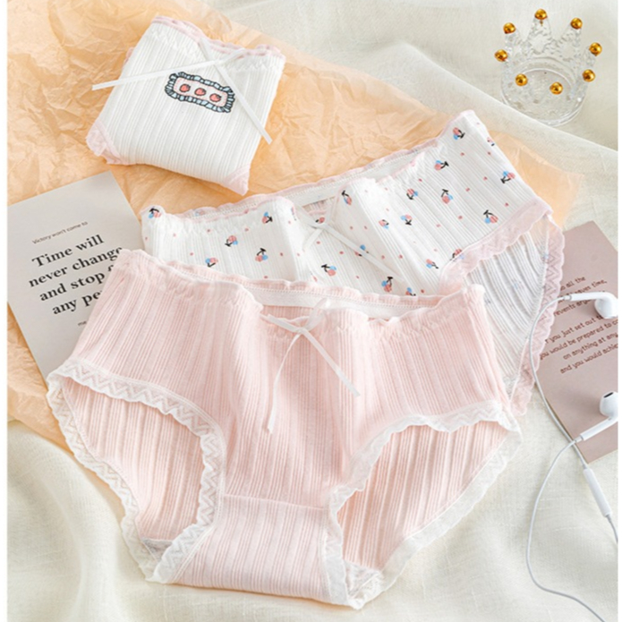 CD1590 Cd Celana Dalam Wanita Segitiga Motif Sutra Briefs Elastis Mid Waist Bahan Katun