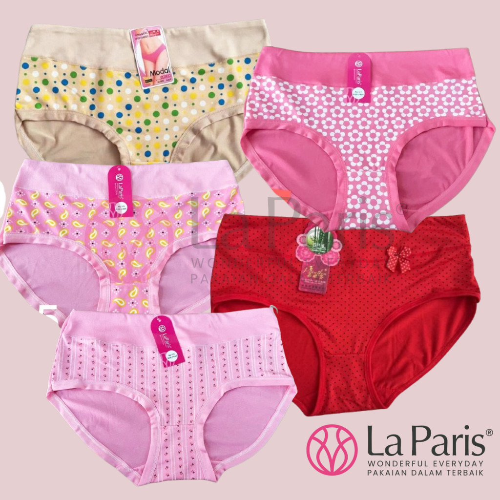 Celana Dalam Wanita Polkadot Motif Bunga Printing Fit L - XL CD High Waist CD Anti Geser La Paris 316 315 317 002 001 51