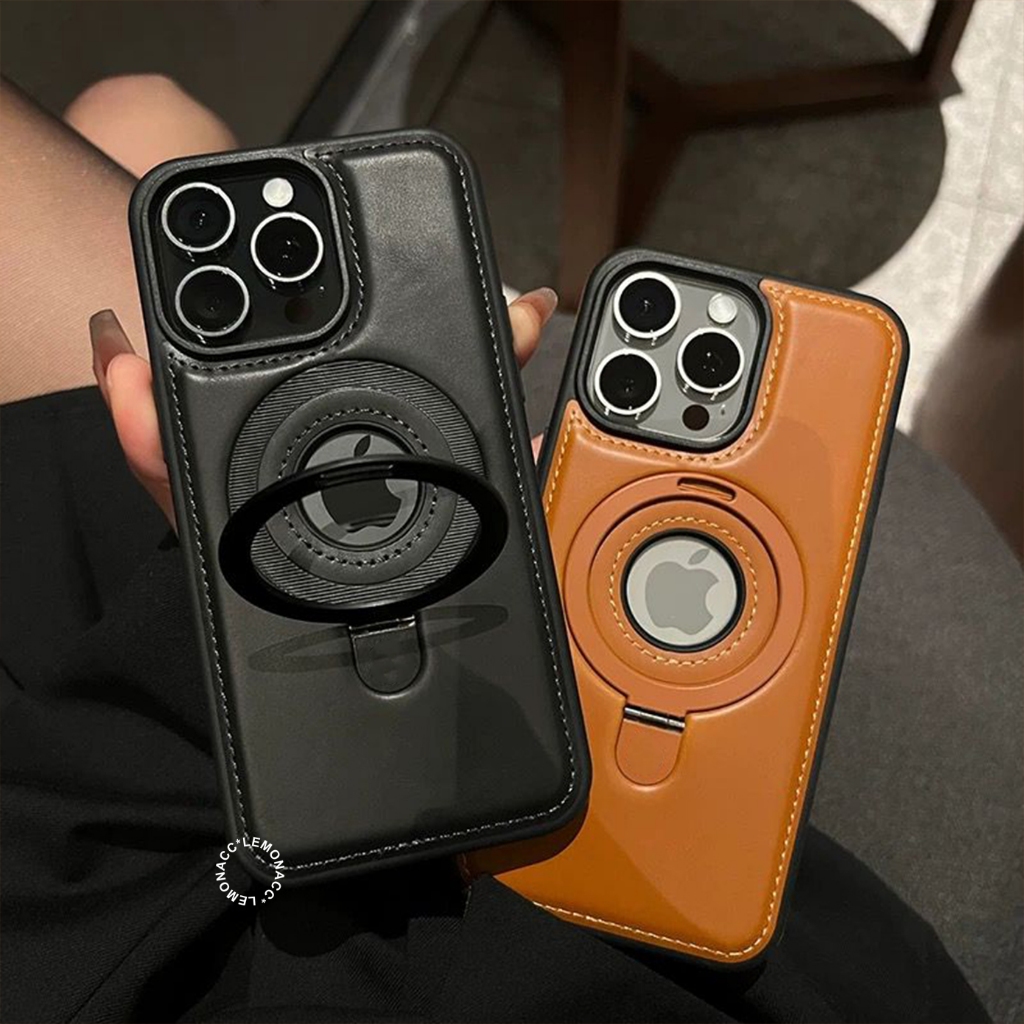 Genuine Case Kulit MagSafe - Leather With Standable – Hardcase / Casing Hp Compatible For Iphone 11 12 13 14 15 16 Pro Promax Plus Casing Pelindung Handphone RCI555