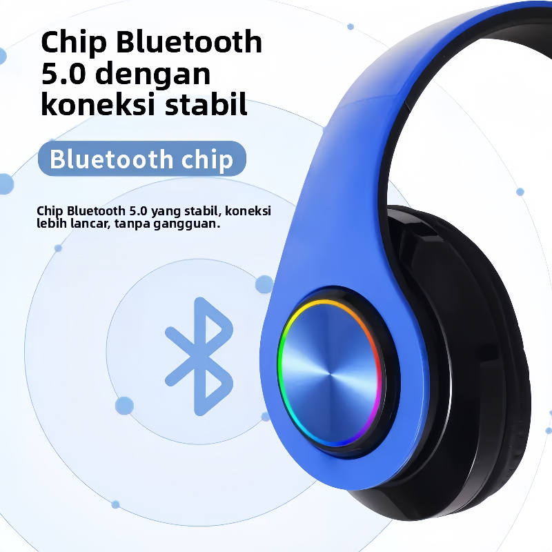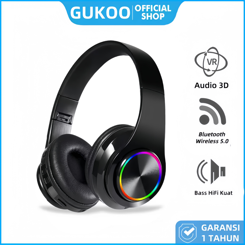 GUKOO Headset Bluetooth 5.0 Wireless & Kabel - Bercahaya Keren Hi-Fi Sound, Pakai Kabel/SD Card, Nyaman Dipakai Lama