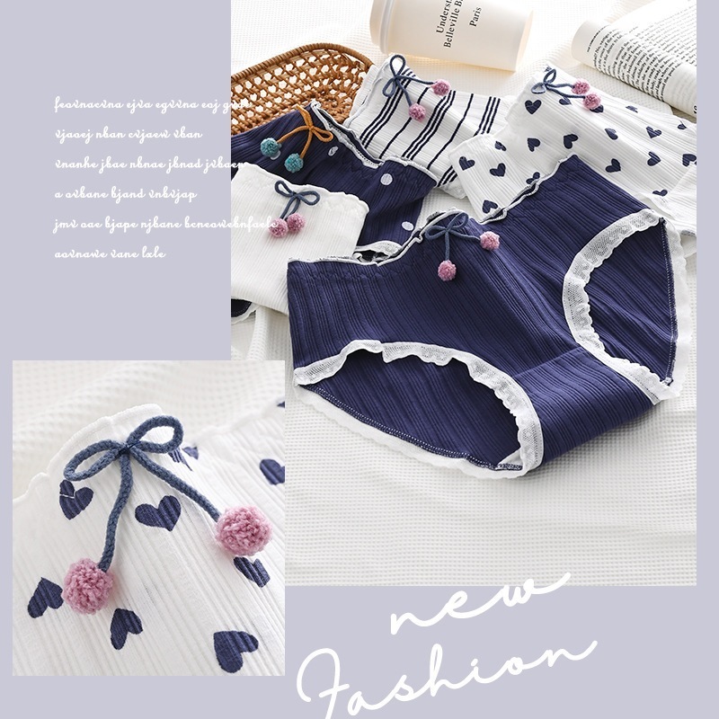 PEACHIE CD2146 CD Celana Dalam Navy Putih Fashion Korean Jepang Wanita Mid Waist Motif Pita Lucu