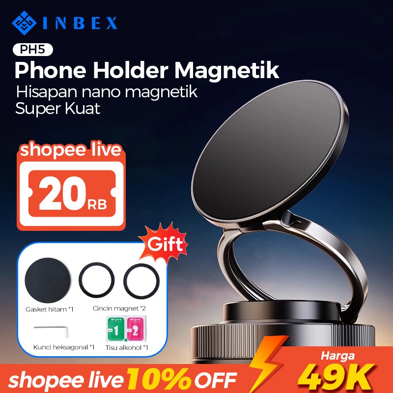 INBEX PH5 Phone Holder Stand HP Mobil dengan Magnet Kuat untuk Desktop dan Dashboard, Aksesoris HP yang Praktis dan Stabil