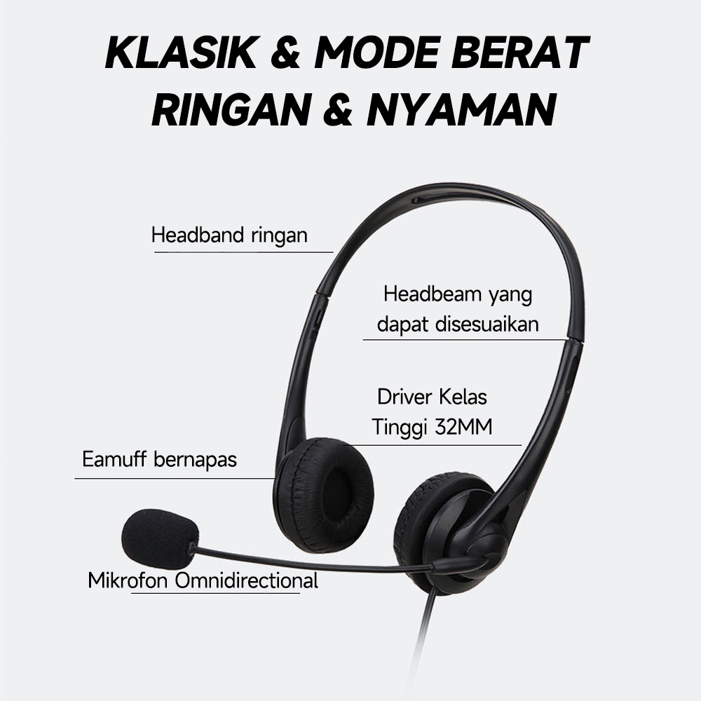 Headphone Stereo Dengan Mikrofon Dan Single Jack 3.5mm/USB Cocok Untuk Pembelajaran Di Kantor