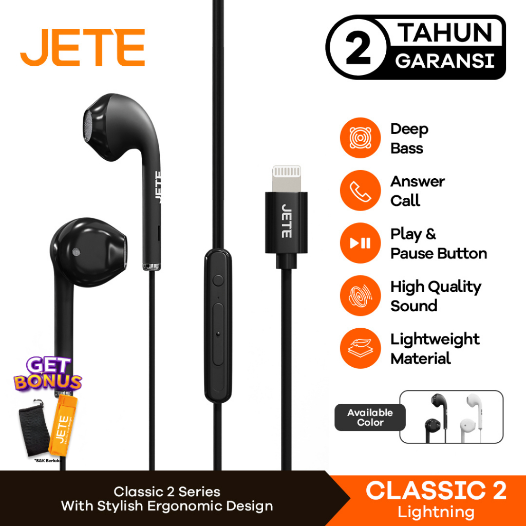 Headset Earphone Lightning JETE Classic 2 with Microphone - Garansi 2 Tahun