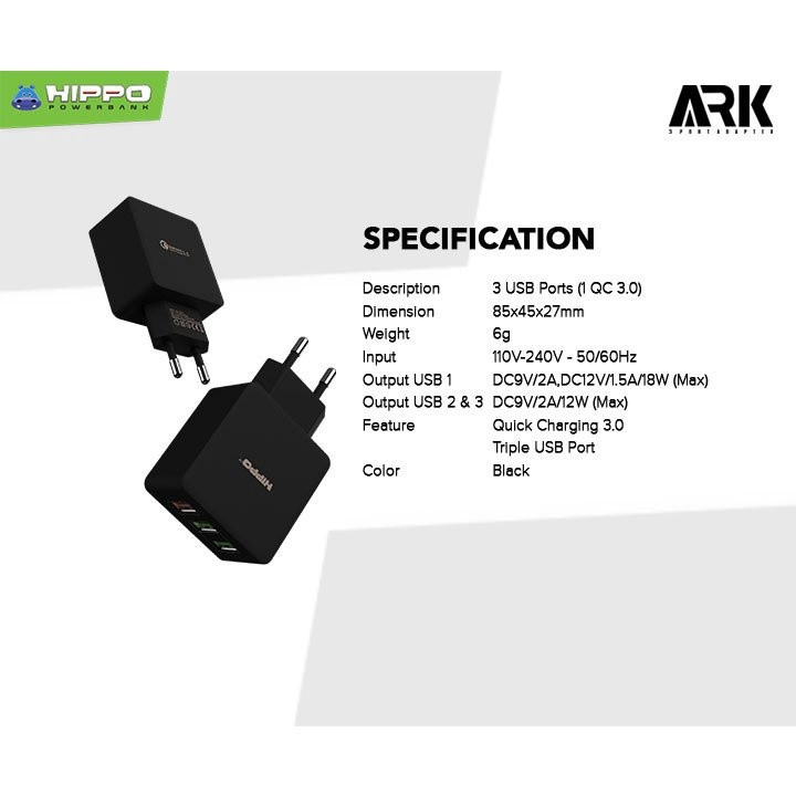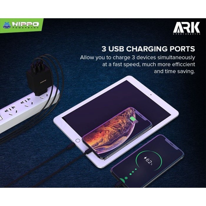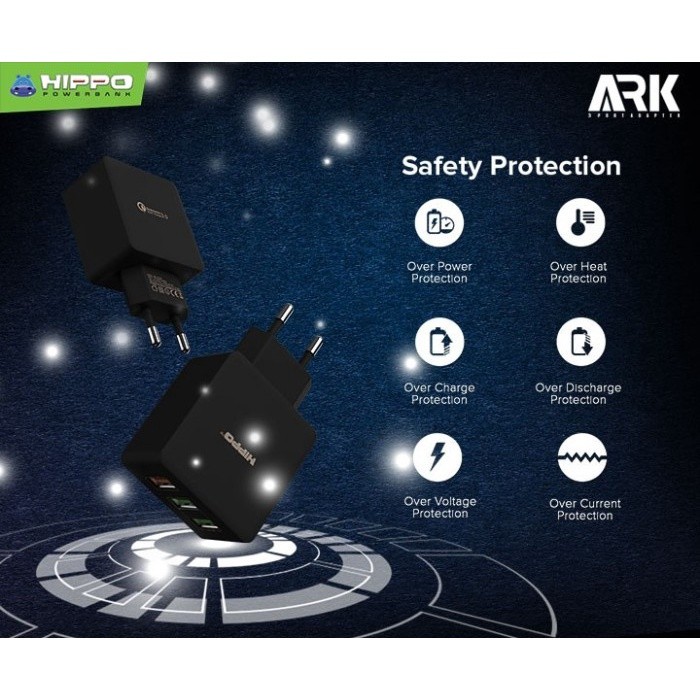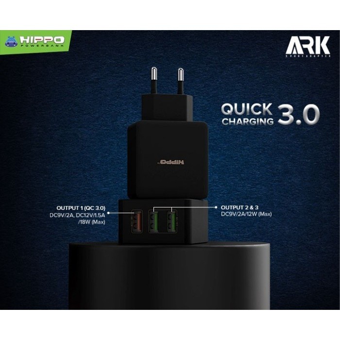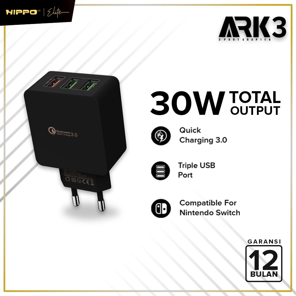 Hippo Adaptor ARK 3 30W Quick Fast Charging 3.0 Travel Adapter Kepala Casan Colokan Charger Rumah type C QC 3 Port Output USB A USB C