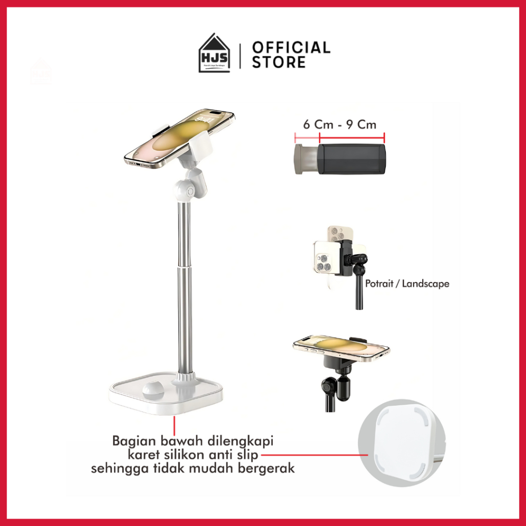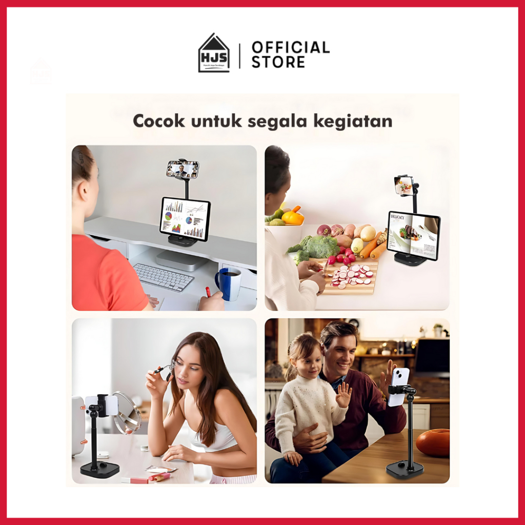 HJS 2in1 Stand Holder Meja 360°- Holder HP & Tablet Overhead Tinggi Fleksibel Cocok utk Live Konten