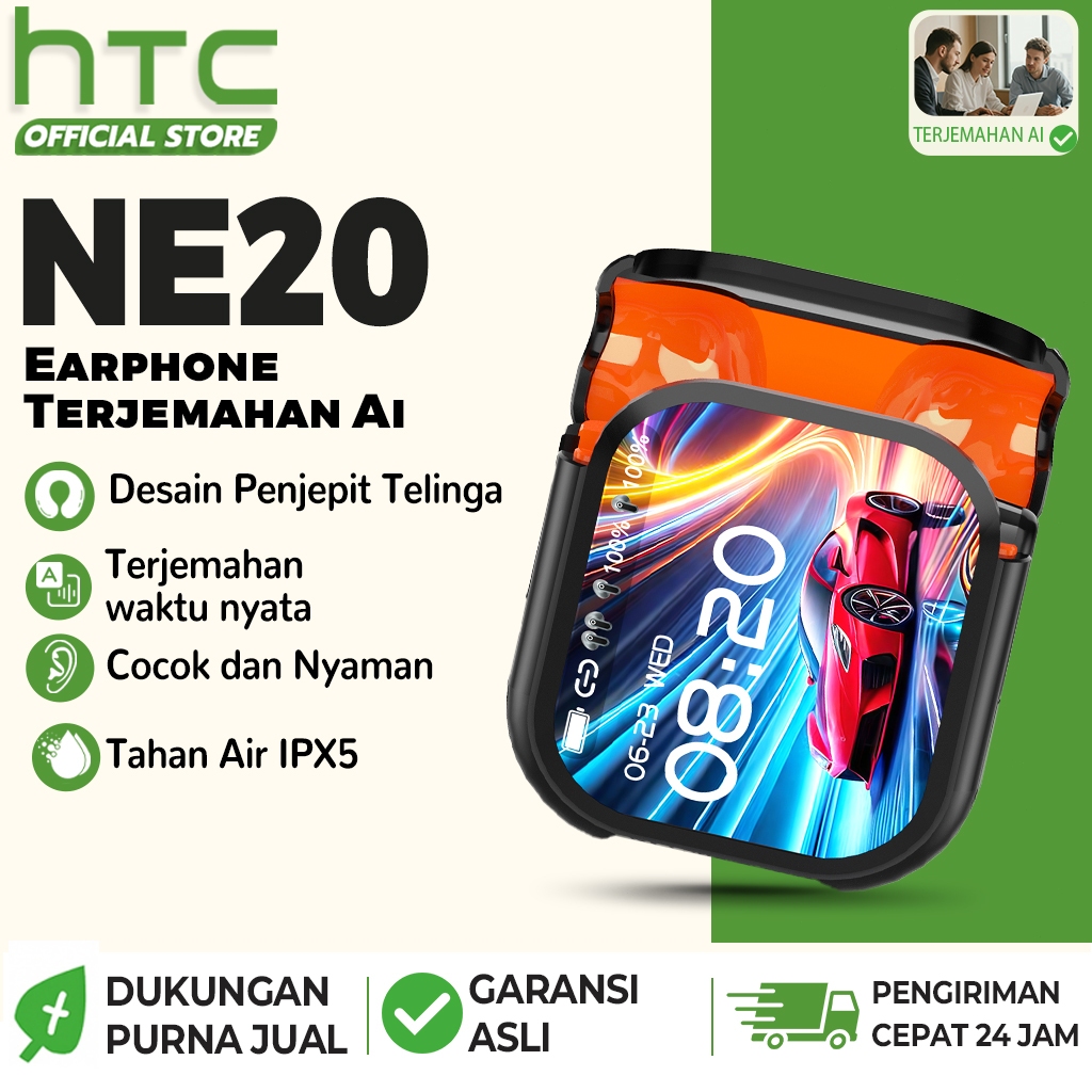 HTC NE20 Headset Penerjemah Headset AI Bluetooth 6.0 Terjemahan Langsung Layar LED Cerdas Kualitas Suara HiFi Teknologi Peredam Kebisingan
