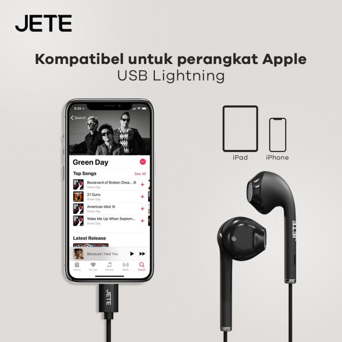 JETE Classic 2 Earphone Lightning iPhone | Headset iPhone with Mic - Garansi 2 th