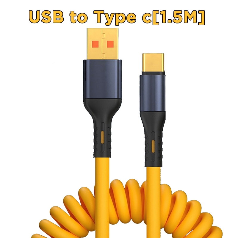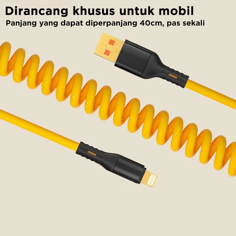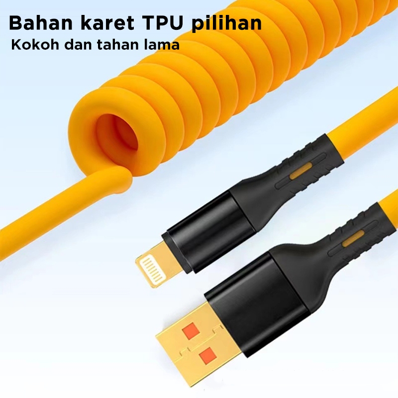 Kabel Data Spring Fast Charging 1.5M iPhone Micro Type C To Lightning PD Pengisian Cepat Siku 120W Car Charge Cable Dual Tipe C ios for Android xiaomi huawei samsung ip