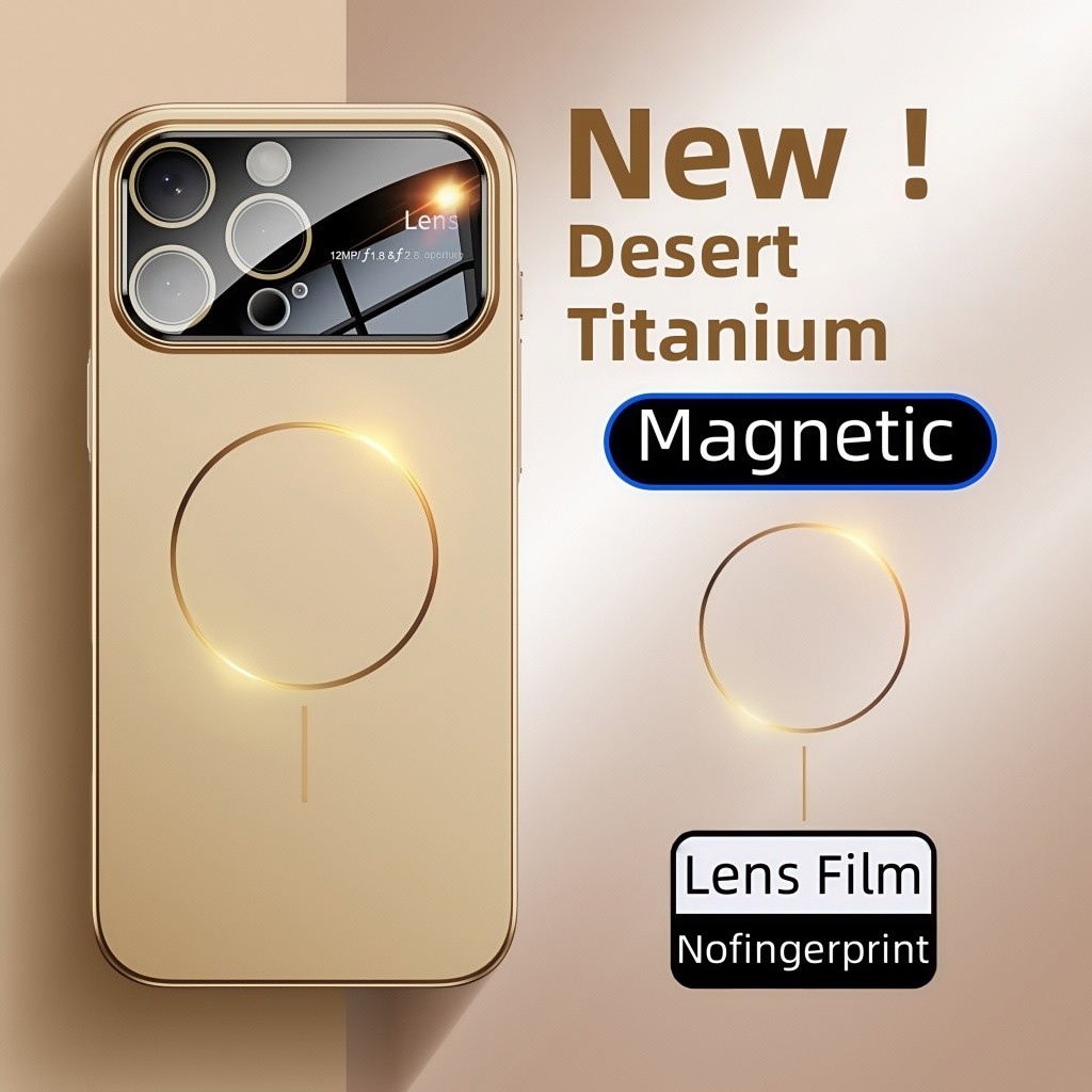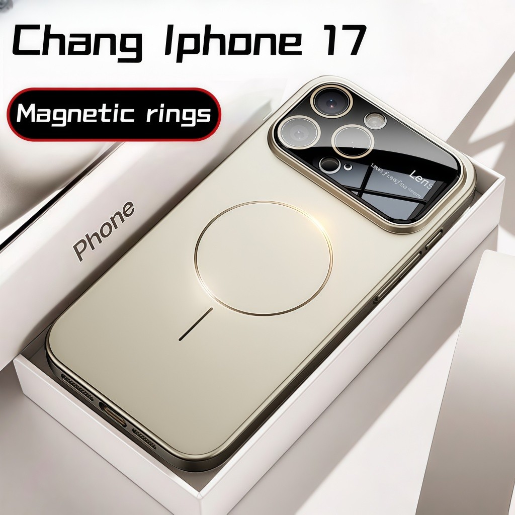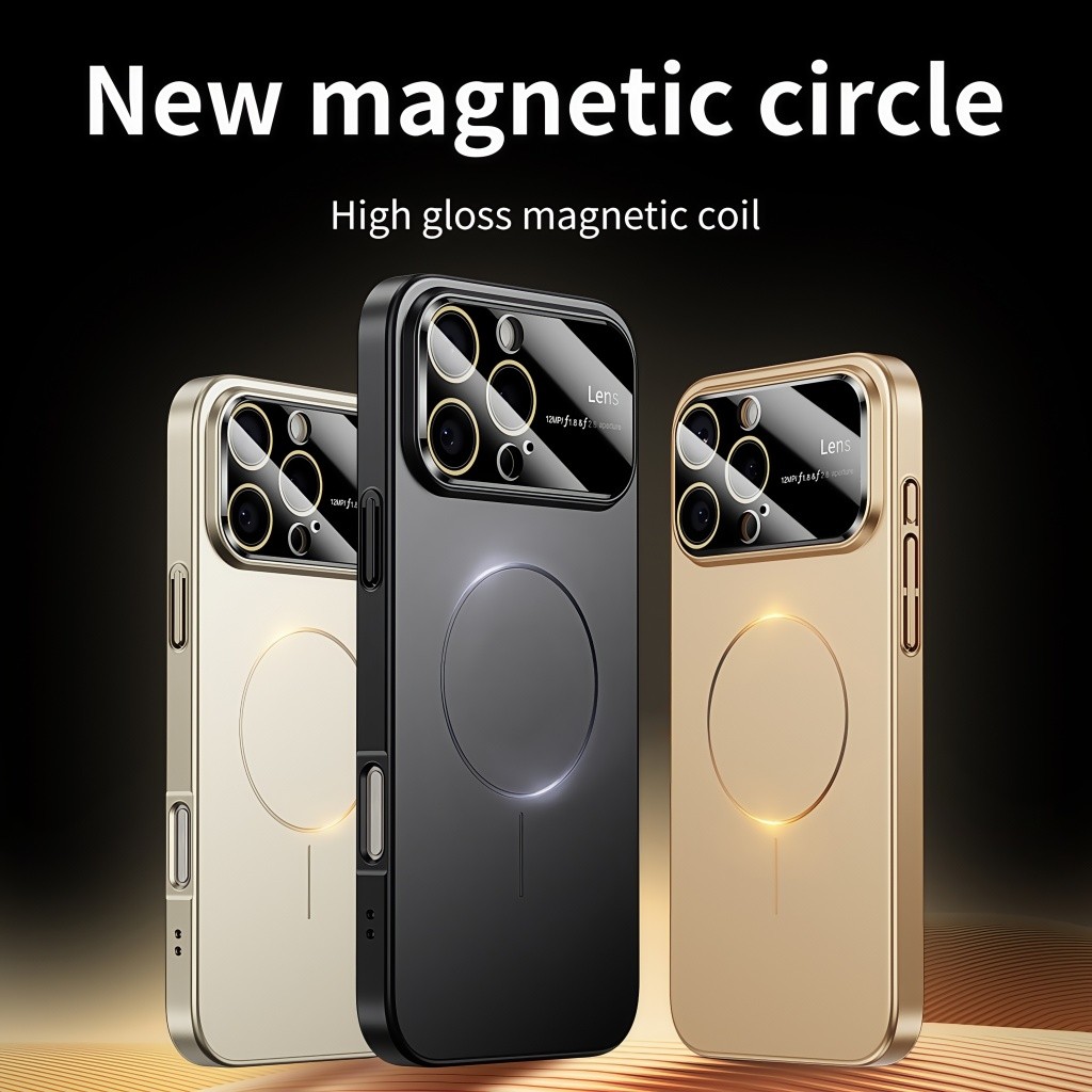Luxury Frosted Casing Large Window Camera Glass Case For iPhone 16 15 14 13 Pro Max For Magsafe Magnetic Wireless Charging Cover