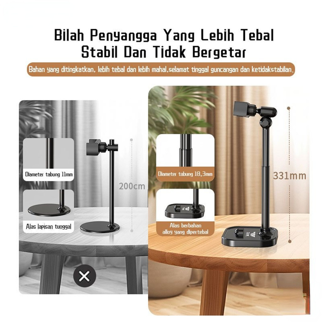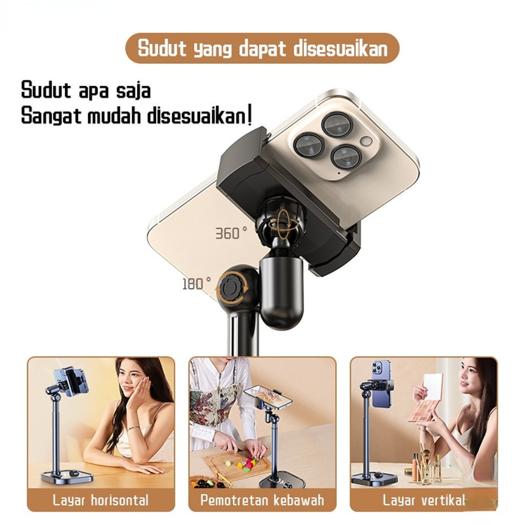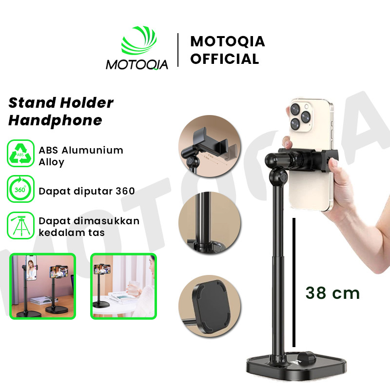MOTOQIA Stand Holder HP Aluminium Desktop Stand HP Flexible Rotate 360 Phone Holder Meja Overhead Phone Stand Overhead Tripod Holder Handphone