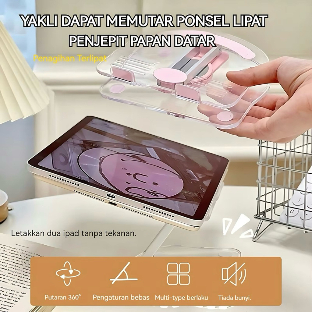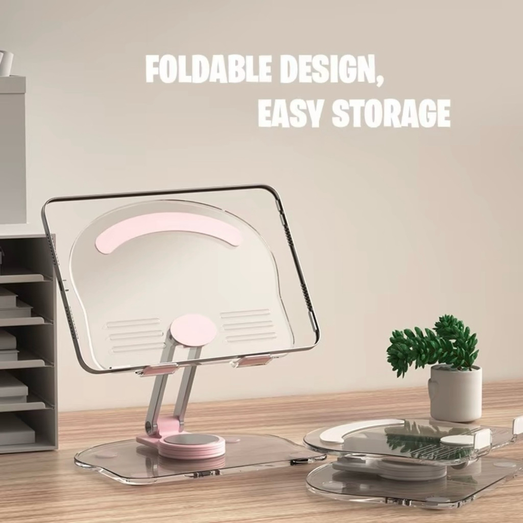 Multi Function Stand Tablet Phone Holder 360 Rotate Transparan Acrylic For Tablet/SmartPhone Universal Anti Slip