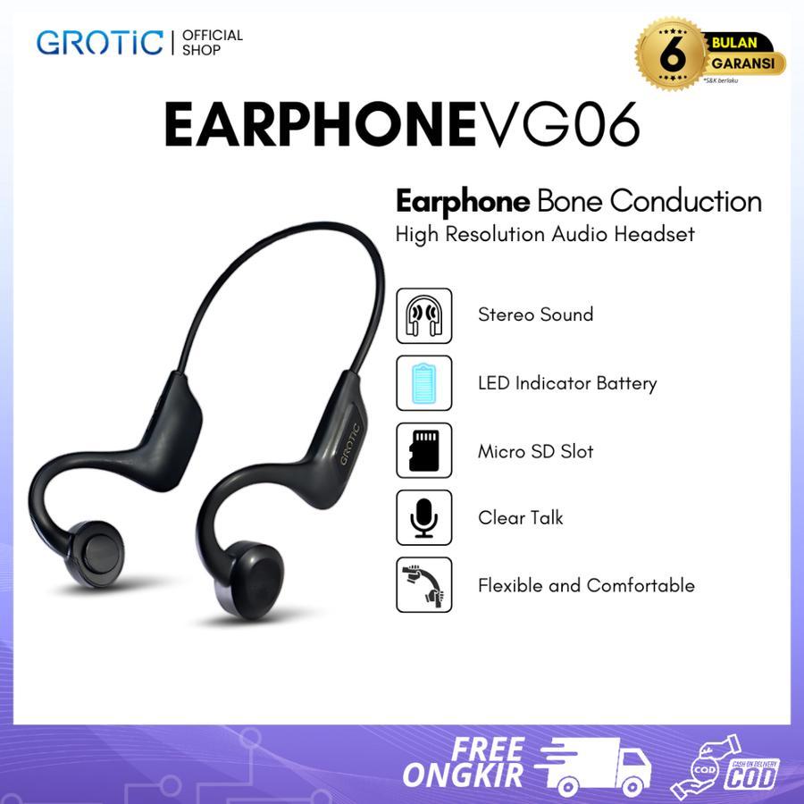 GROTIC Headphone Wireless Bone Conduction For Sport Open Ear Earphone Bluetooth