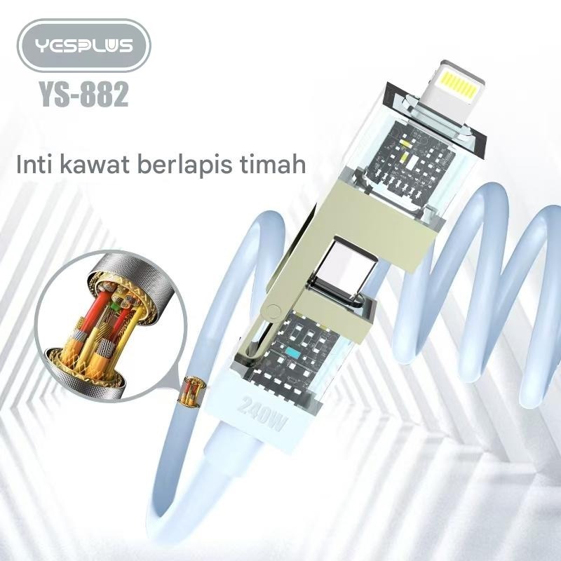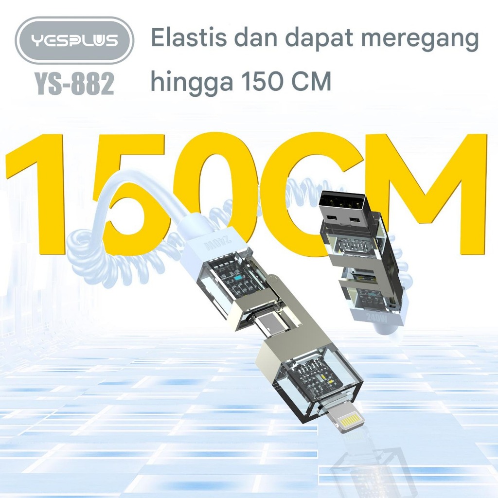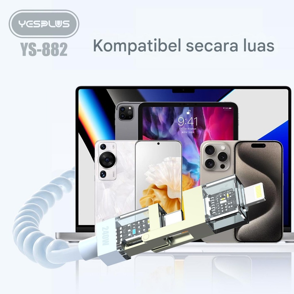 Kabel Data YESPLUS YS-882 Spring 4in1 Fast Charging 240W Quick Charge USB Type C Lightning Spiral