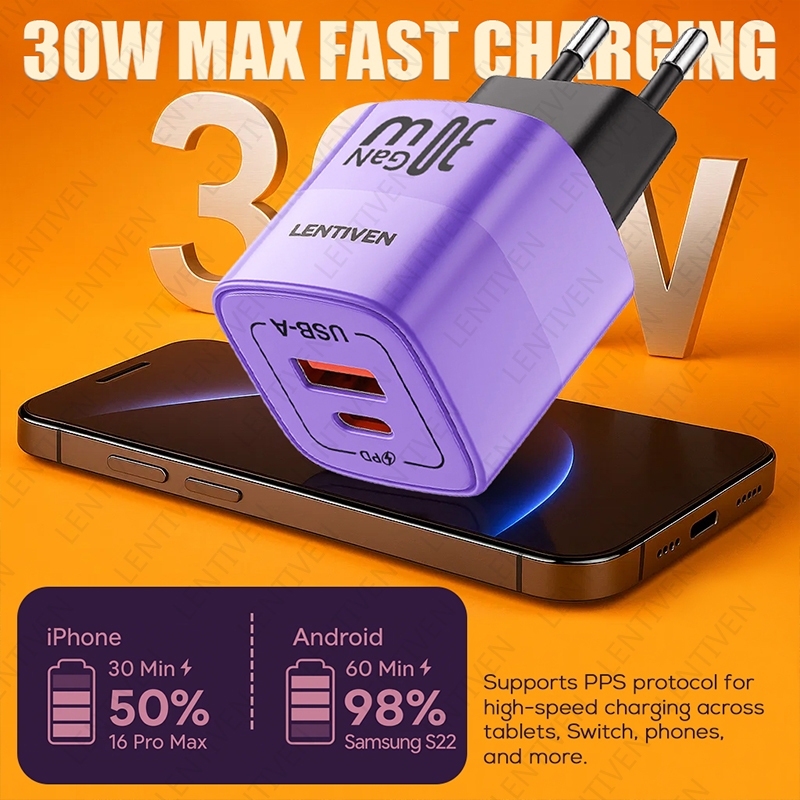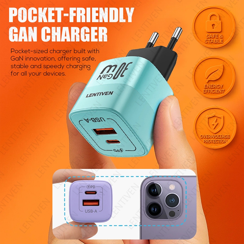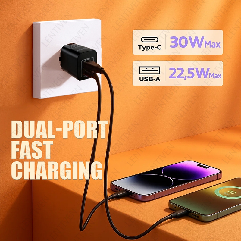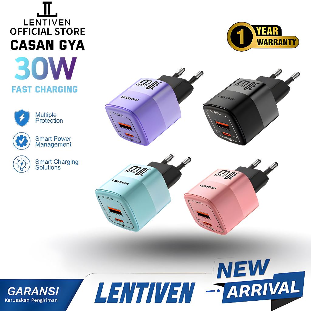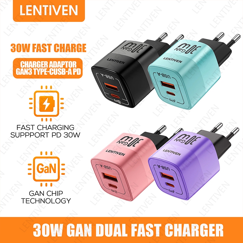 LENTIVEN 30W Adaptor Charger fast charging USB Type C Kepala Charger 20W GYA GARANSI 1 TAHUN