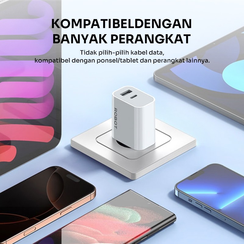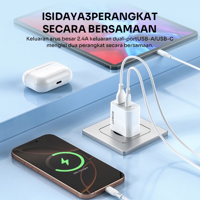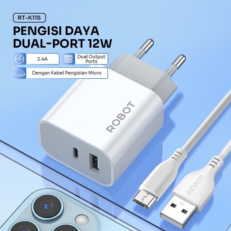 ROBOT Charger Kepala Charger Dual Port 12W 2.4A Dengan Kabel Micro USB RT-K11S Original - Garansi Resmi 1 Tahun