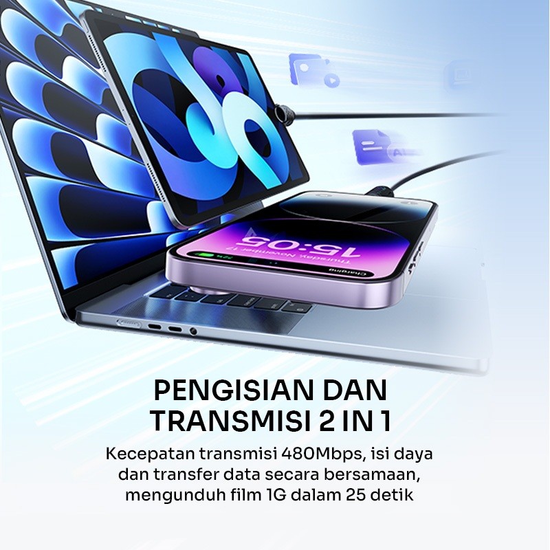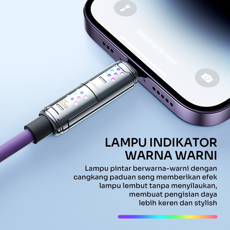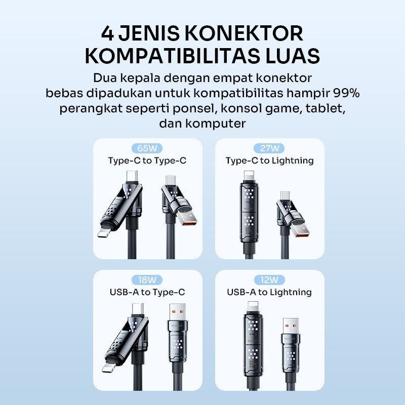 ROBOT Kabel Data Fast Charging 65W / Fast Charging / Cable Data / Kabel Konektor 4-in-1 100cm RGB Material Silikon Lentur Tahan Api RTF01 Original - Garansi Resmi 1 Tahun