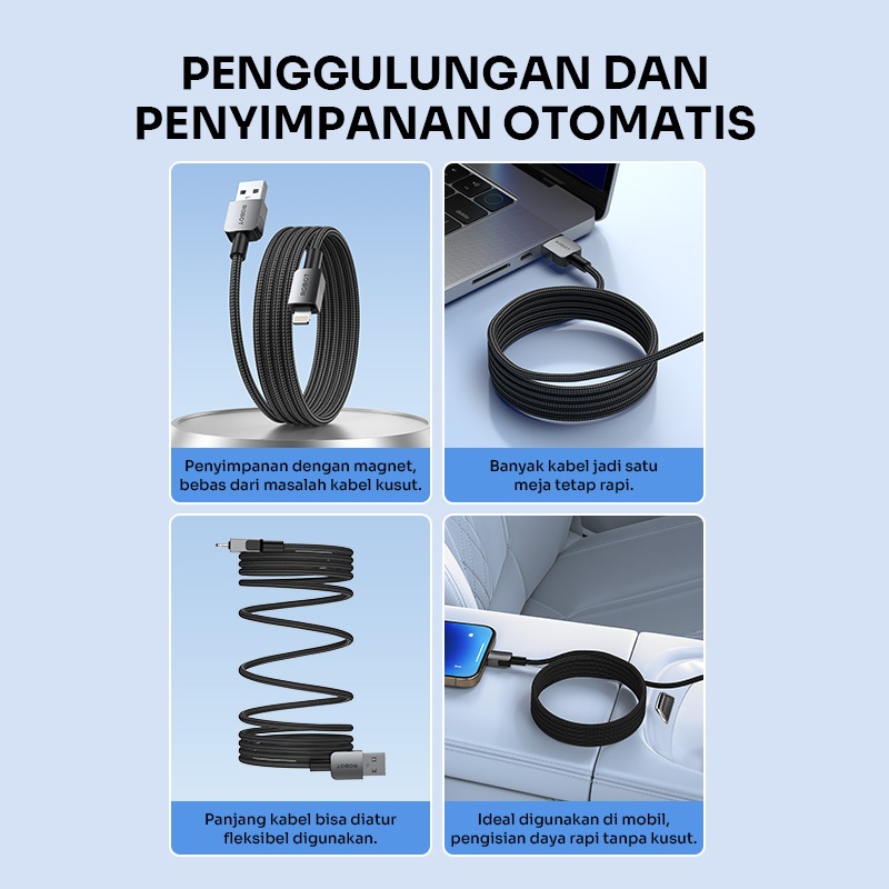 ROBOT Kabel Data Magnetik Fast Charging 65W Kabel Charger Type C Lightning Anti Kusut 1M RXM100/RXC100/RXL100/RXCC100/RXCL100 Original - Garansi ResmI 1 Tahun
