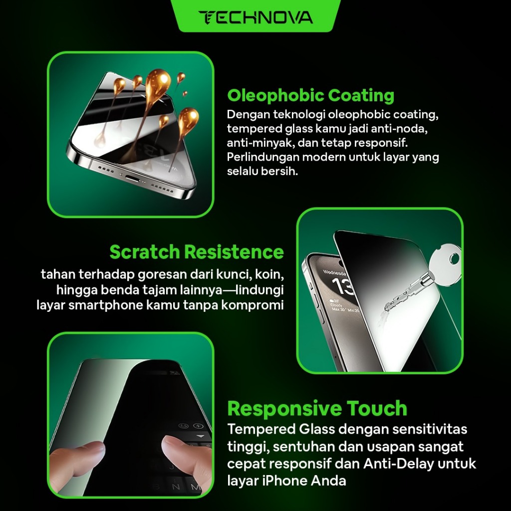 Technova Tempered Glass iPhone 11 12 13 14 15 16 17 Pro Max HD Full Screen Anti Gores
