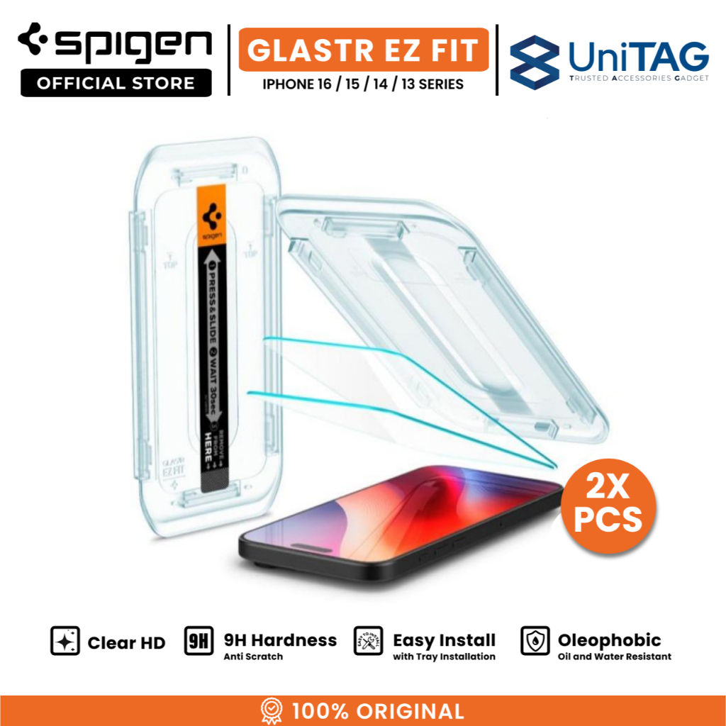 Tempered Glass iPhone 16/15/14/13 Mini Pro Max Plus Spigen Glas tR EZ Fit Anti Gores Anti Spy Clear Full Cover