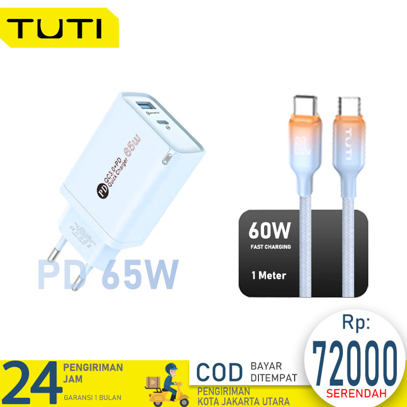 TUTI Kepala Charger Fast Charging 65W Usb A Type C Fast Charger