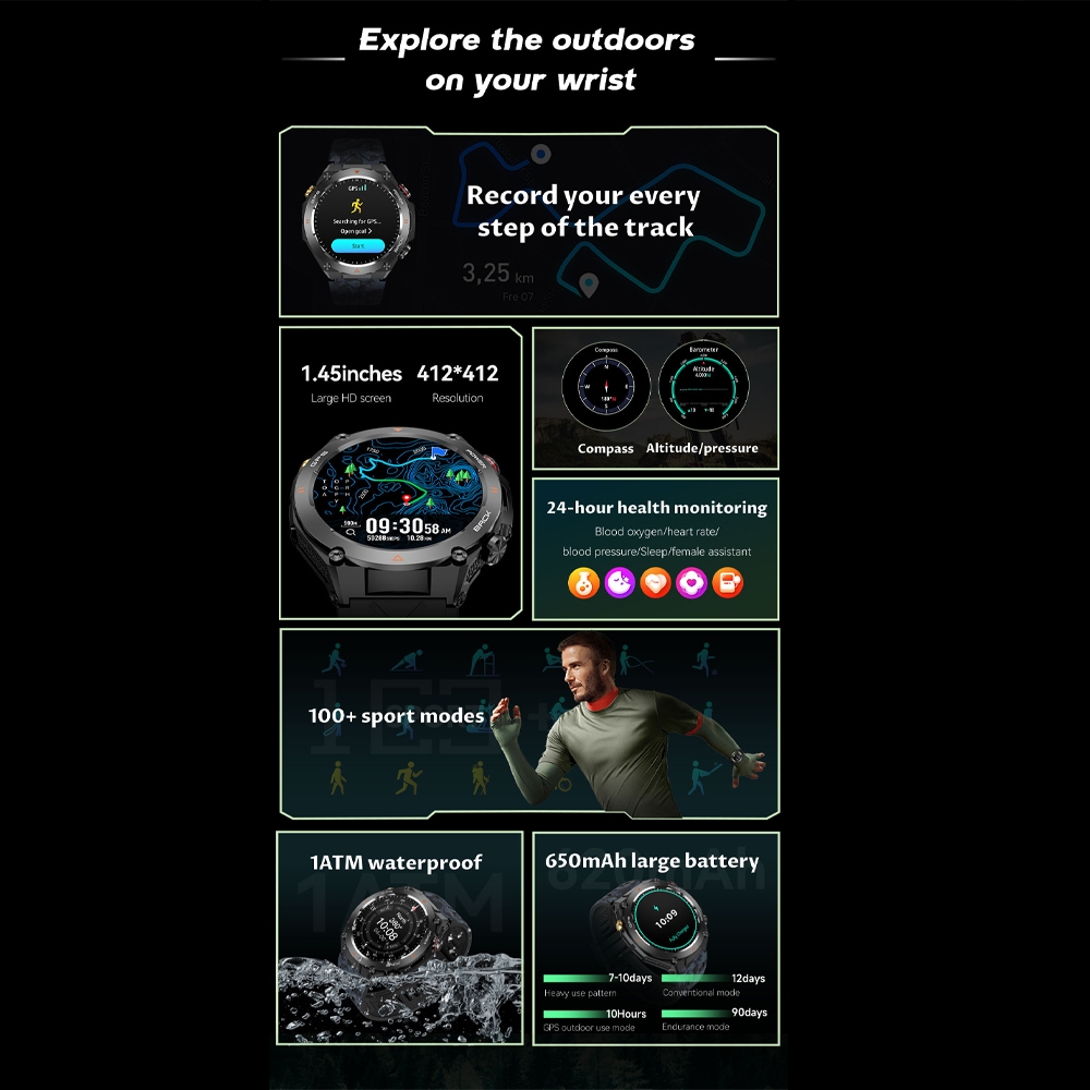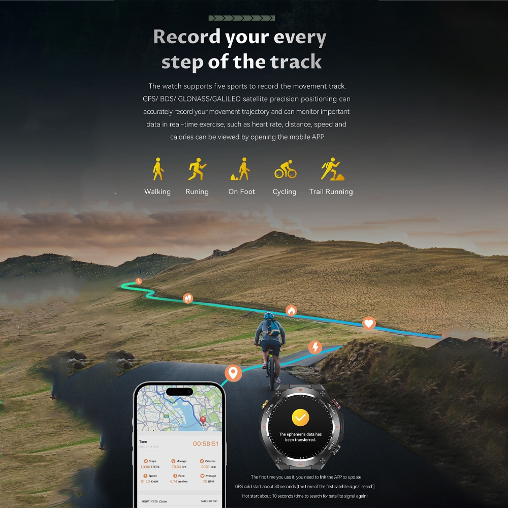 【Built-in GPS】LDS KC82 Smartwatch - IP68K Tahan Air, Pelacakan Real-Time, Layar Anti Gores Jam tangan Pintar Militer Ke