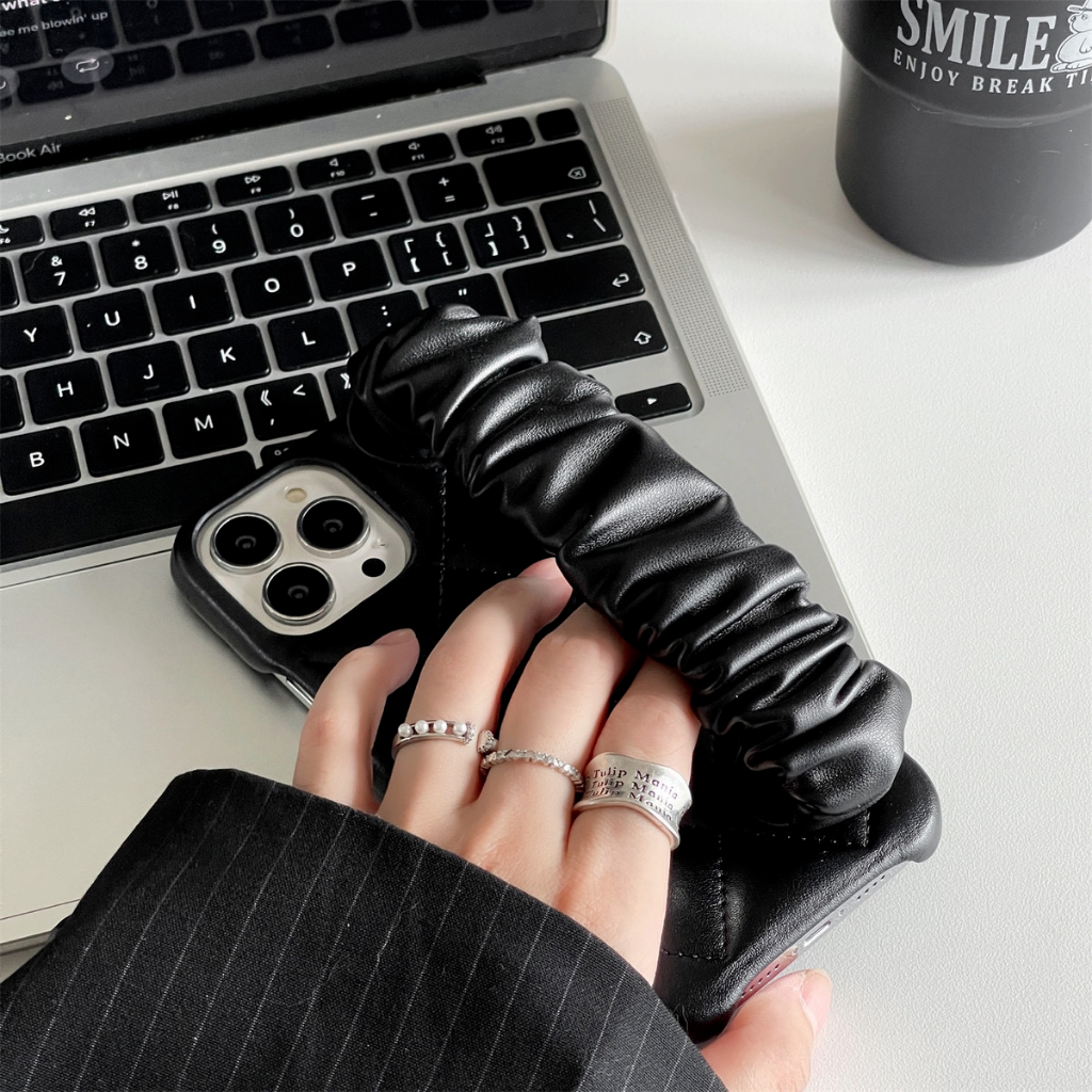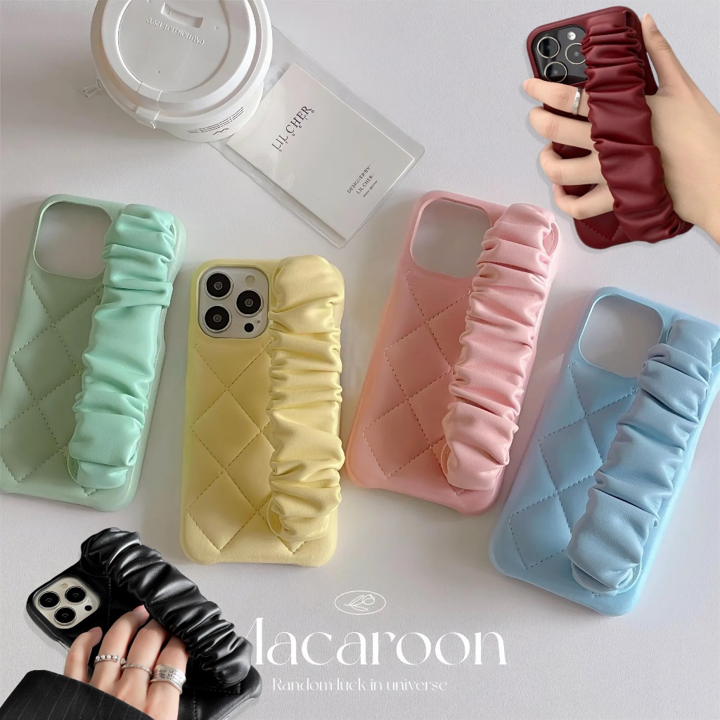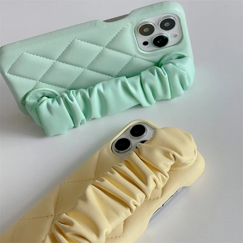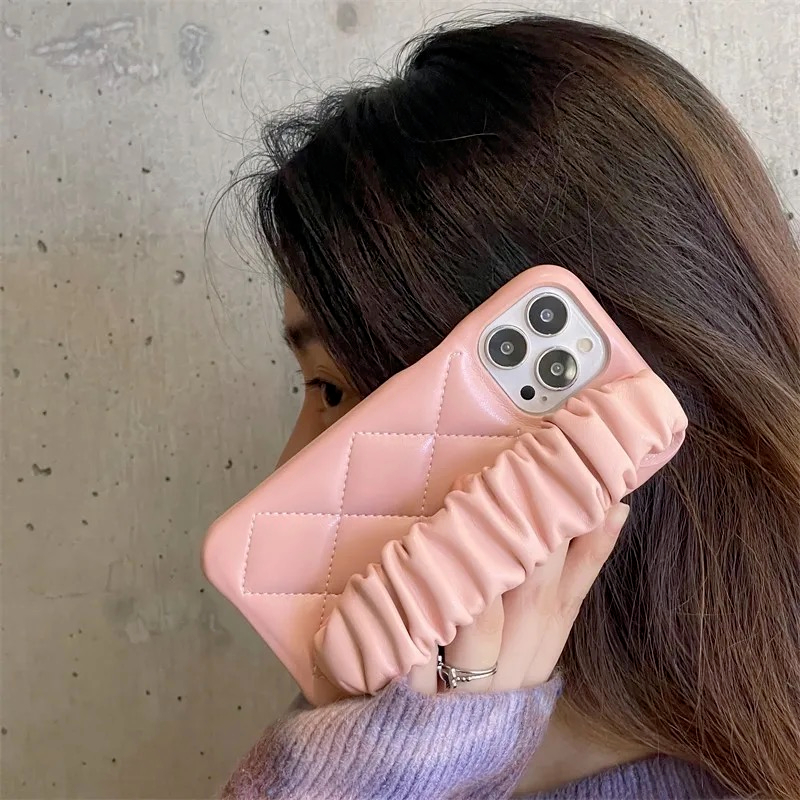 LEATHER RHOMBIC WRIST STRAP CASE IPHONE 11 12 13 14 15 PRO MAX PLUS