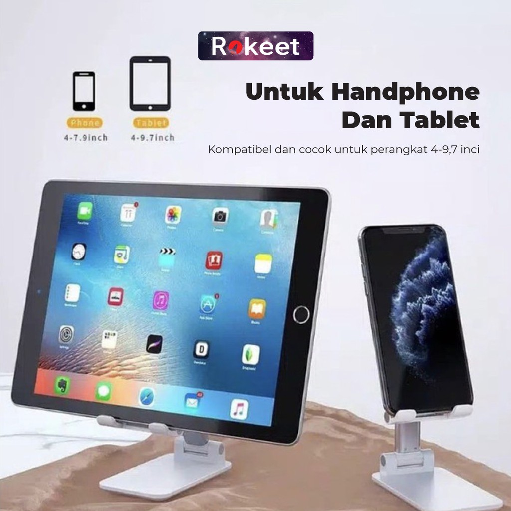 Rokeet Stand Holder HP Folding Desktop Phone Stand Lazypod Handphone Tablet Universal