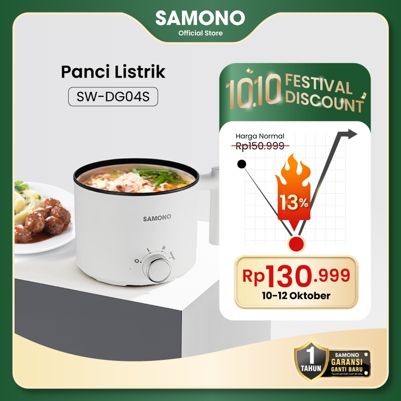 SAMONO Panci Listrik Anti Lengket 1.5 Liter Kukusan Stainless Hemat Listrik Kukusan Tutup Kaca DG04S
