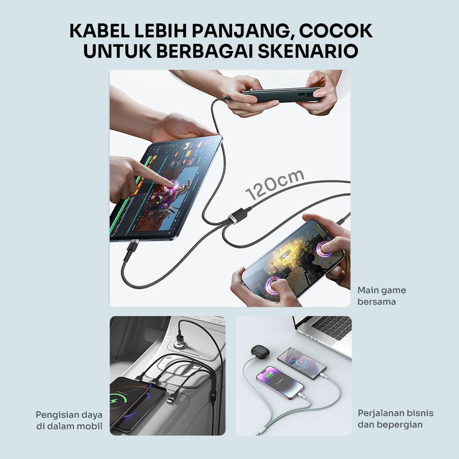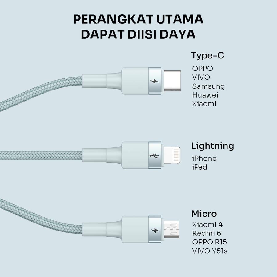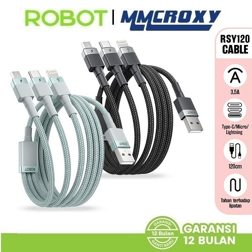 Robot RSY120 Kabel Data Charger 3 in 1 Micro/Type-C/Lightning Fast Charging 3.5A Aluminium Alloy Braided