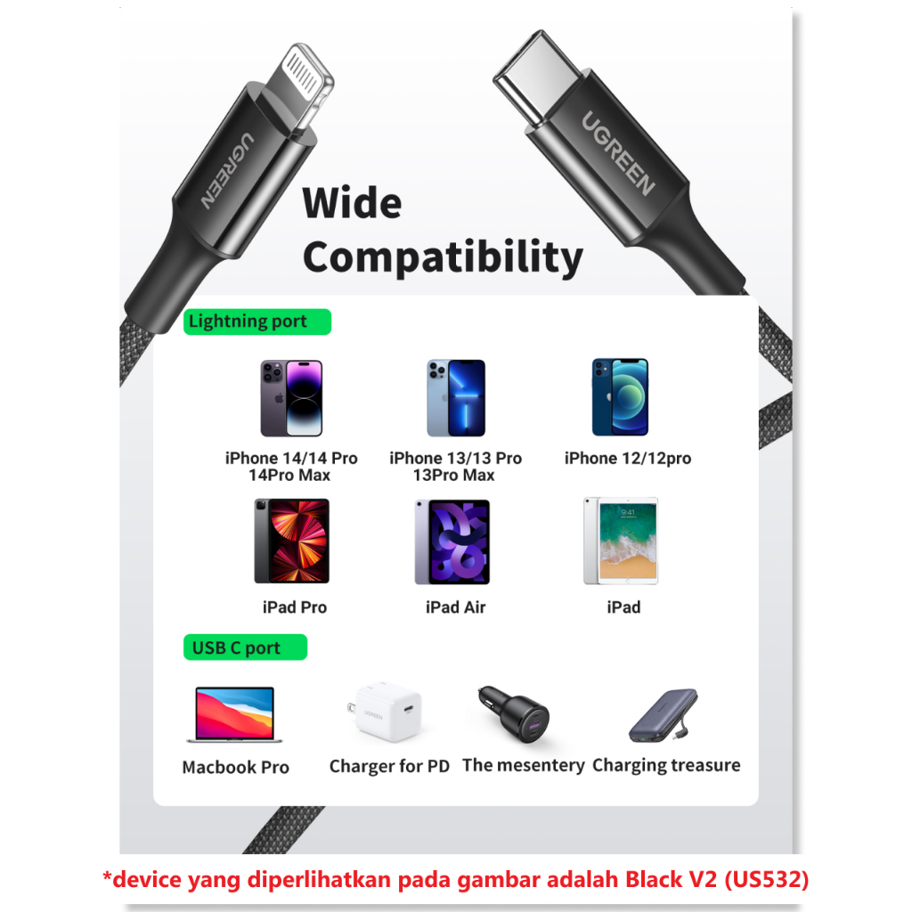UGREEN Kabel Data Fast Charging iPhone 14 13 12 11 Charger USB to Lightning MFi Braided Cable