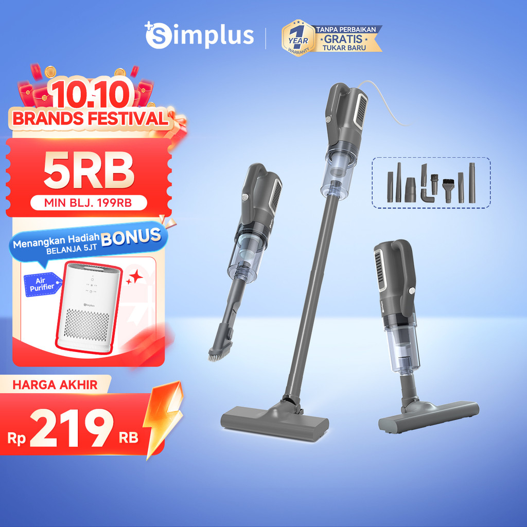 Simplus Vacuum Cleaner Genggam Berdiri 2 IN 1 Penyedot Debu Daya Hisap Besar 17000Pa Aksesori 9pcs