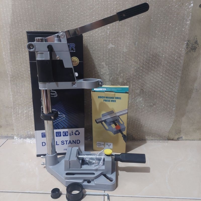 Paket Stand Drill Mesin Bor Tangan Alumunium Base + Vice Drill Press / Ragum