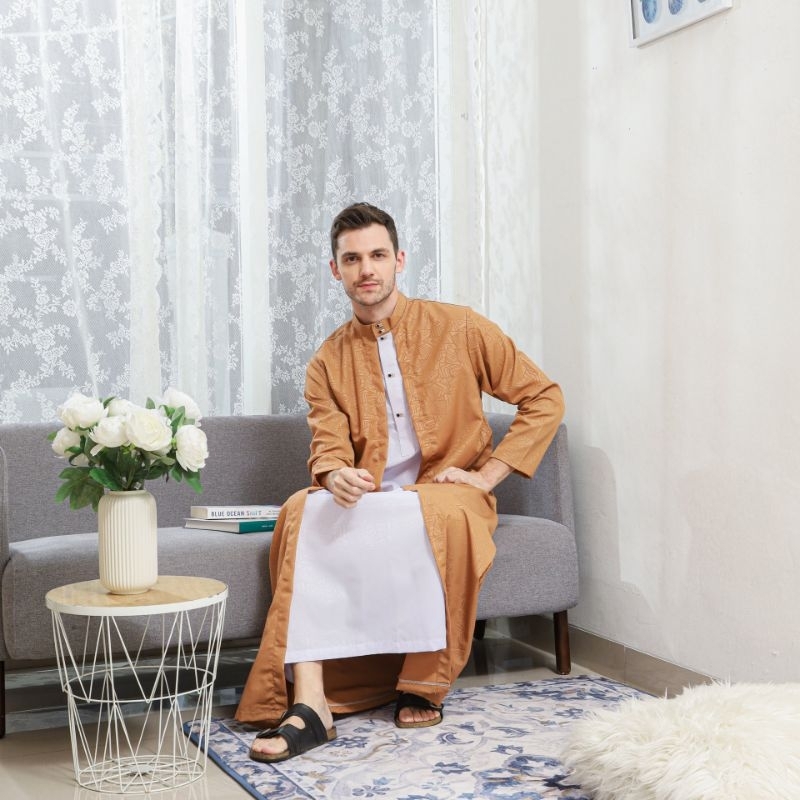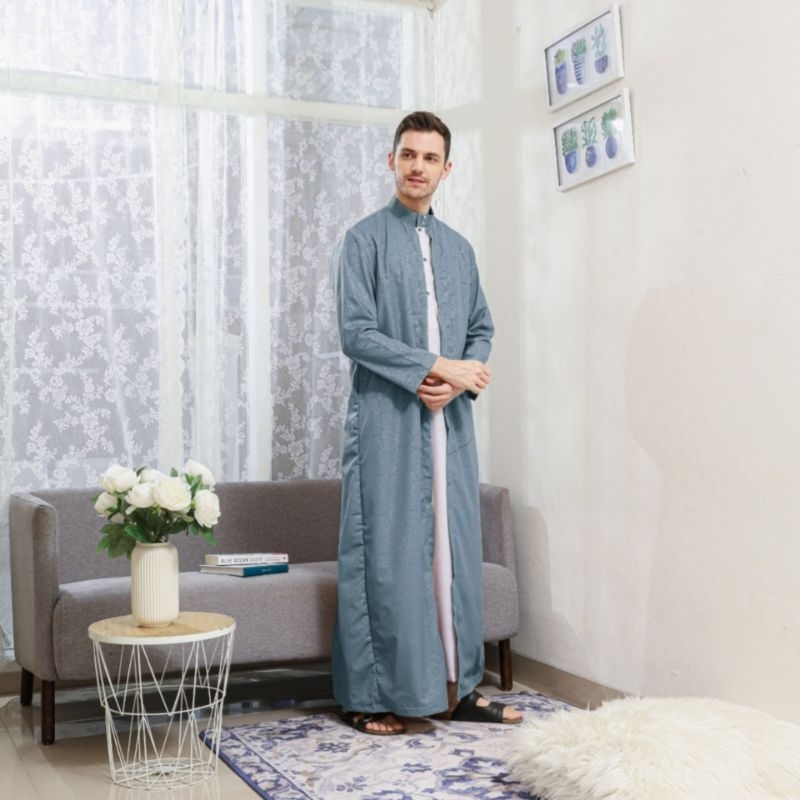 Family Muslim - Jubah Gamis Pria Dewasa Lengan Panjang 2in1 Al-Azhar Hiitam