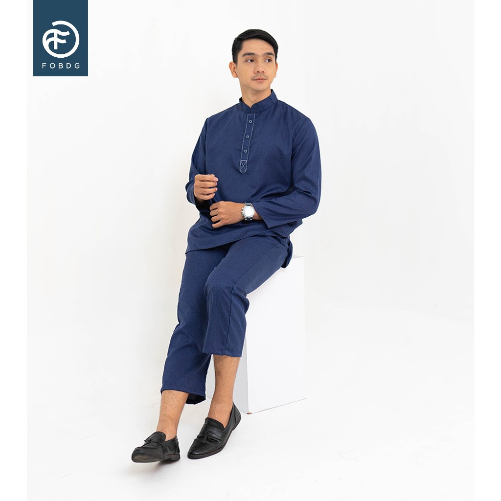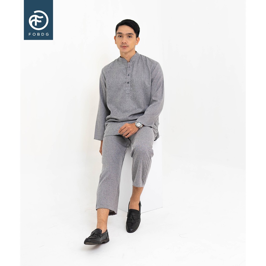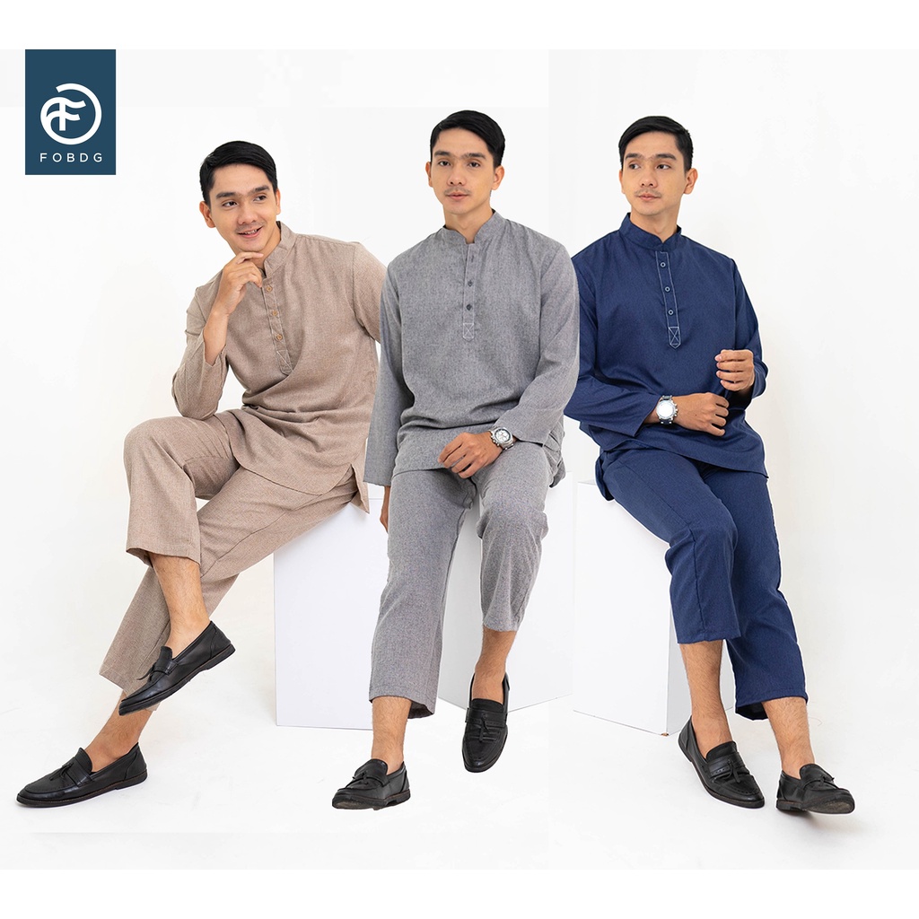Baju Koko Setelan Pria Dewasa Kemko Bahan katun Polos Lengan Panjang Set Hadi Fobdg