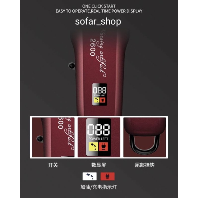 KEMEI KM-2600PG Alat Cukur Rambut Tanpa Kabel Profesional Rechargeable Electric Hair Clipper