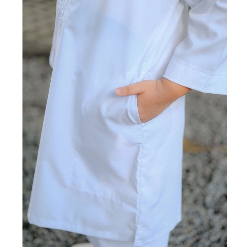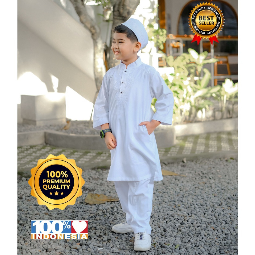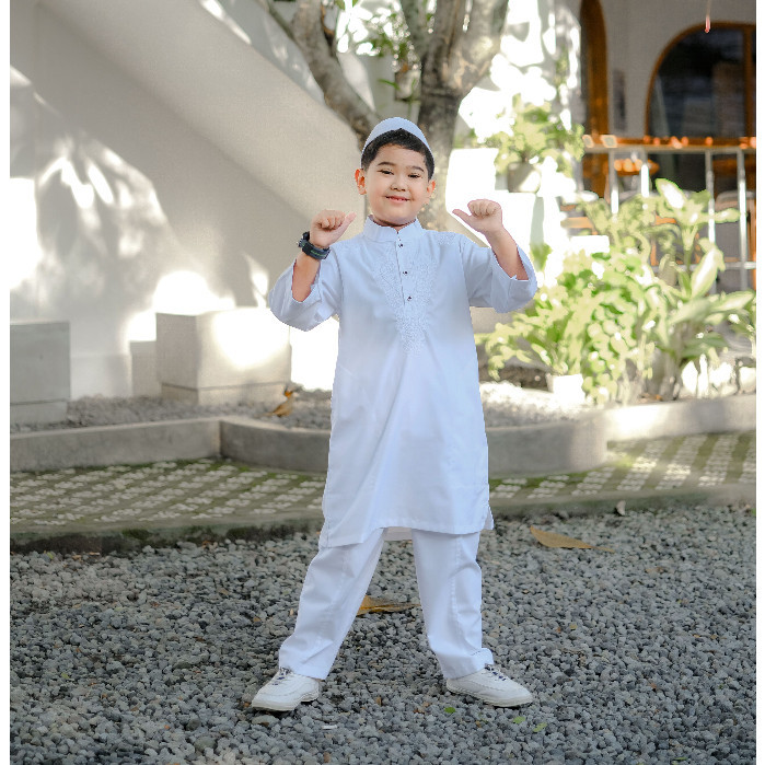 Fatih dan Firra - Set Peci Stelan Koko Putih Anak Laki-Laki Dhaval: Belajar Manasik Jadi Lebih Asik