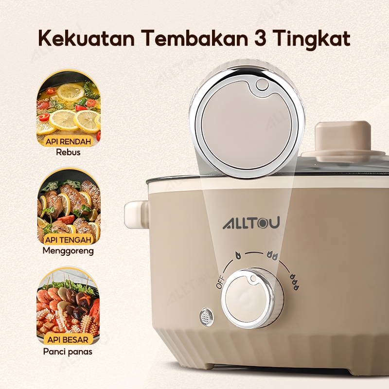 ALLTOU Panci Listrik Serbaguna 3L/5L Multifungsi Steamer Panci Listrik Serbaguna Anti Lengket