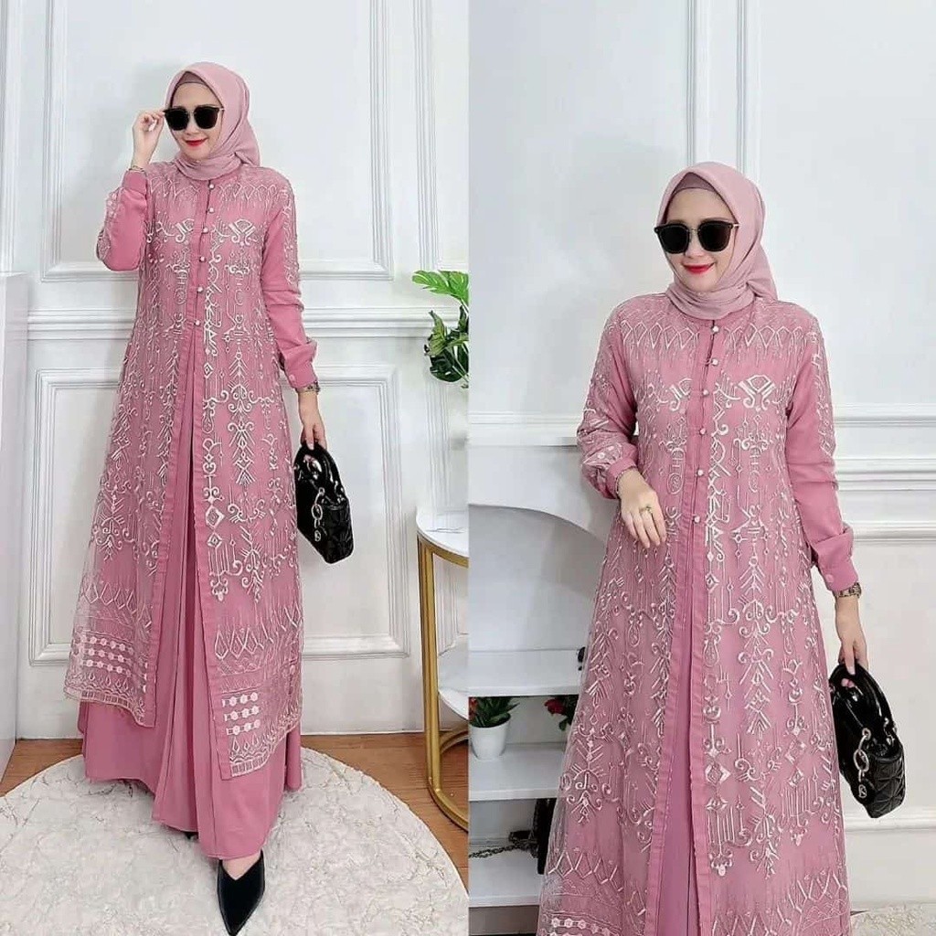 Vallina Outfit - Sabrina Maxy Dress Brukat Gamis Muslim Wanita Ceruty Babydoll Kondangan Premium