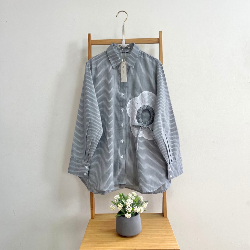 Eclemix Top Orio | Atasan Kemeja Kerja Stripes Patch Katun Bordir Bunga | Smart Casual